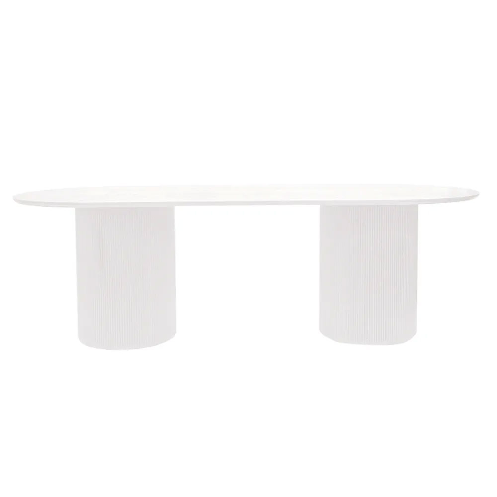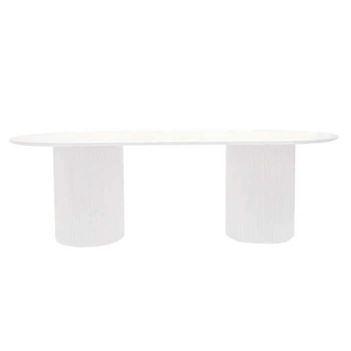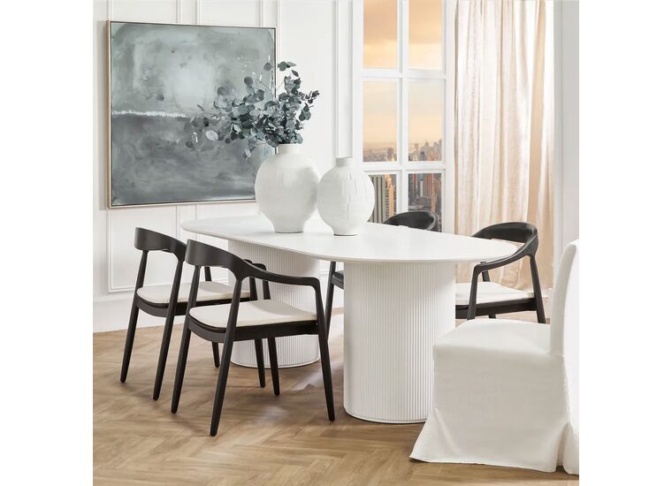 Infusing both traditional and modern spaces with striking sculptural style, the Arlo oval dining table in white is a spectacular furniture piece.