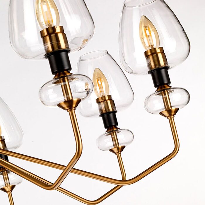 Its unique glass shades and angular arms create a bold sihouette and a twist on the classic J arm fitting style.