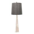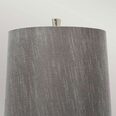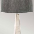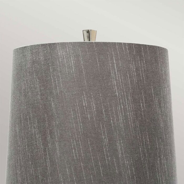 Steel tapered column table lamp finished in Polished Nickel. Includes a Dark Grey faux silk hard-backed shade.