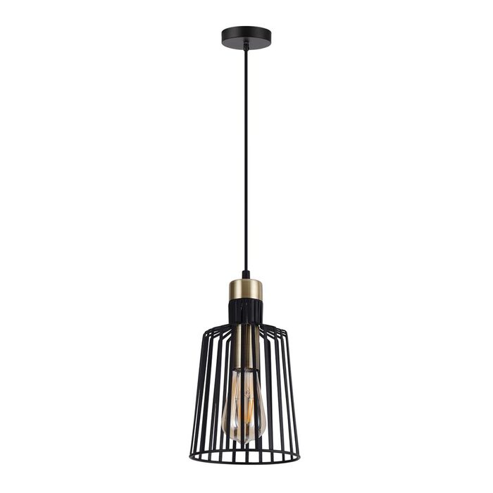ASHLEY-PDT metal pendant Series is a modern wire guard shade pendant, which offers a slim and linear appearance for most modern interior decors. Ideal as a feature pendant in living rooms and bedrooms. Available in small, medium and large sizes. Featuring plated Matt Black with Antique Brass highlights. Part of a family of matching desk lamp, table lamps, as well as hanging pendants.