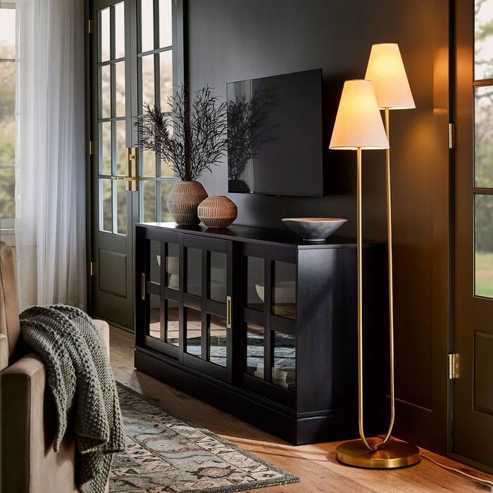 This two-head floor lamp brings a unique minimalist look to your indoor lighting and easily complements your existing decor.