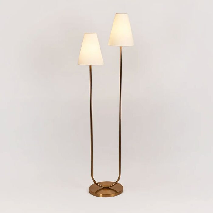 Transform the ambience of any room with this 2-Head Floor Lamp in Antique Brass.