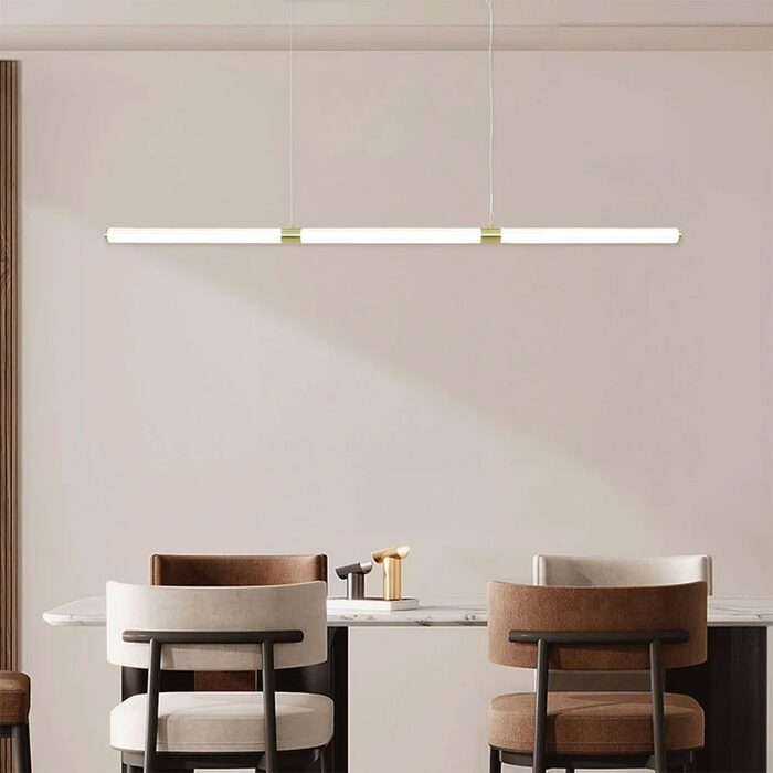 The Astrid 3 Light LED Pendant Light blends modern minimalist design with functionality, featuring a sleek linear shape, a gold iron base, and elegant acrylic silicone shades.