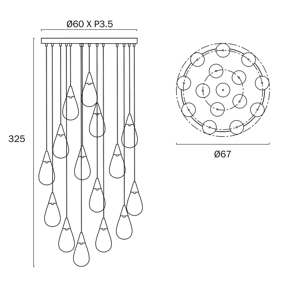 Available as a striking 15-light cluster or a minimalist single pendant, the 15-light option showcases a sophisticated mix of smoke and champagne glass, while the single light is offered in either smoke or champagne.