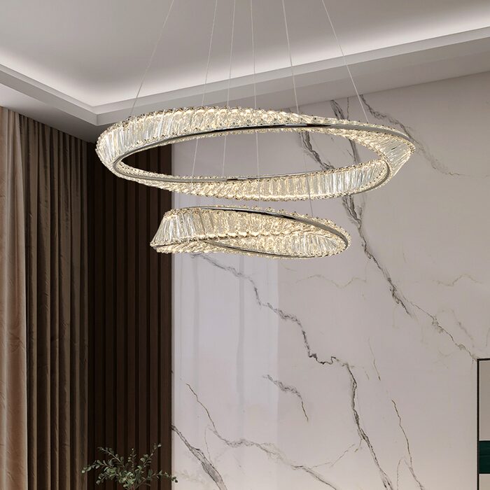 The Atticus Crystal 800 + 500 Pendant is a stunning display of modern elegance.