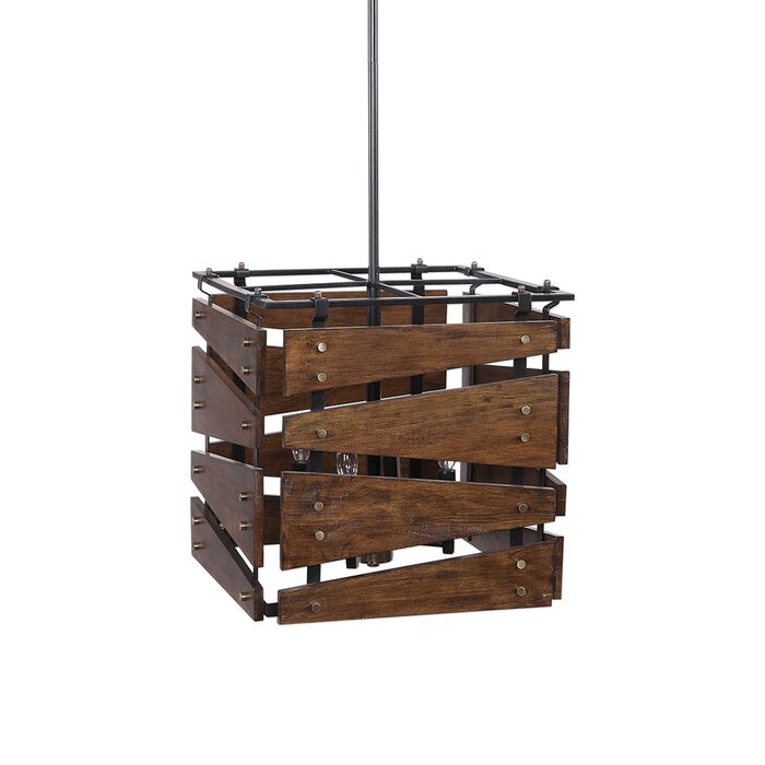 From the geometric & natural trends our 4 Lt. rod hung pendant features wood slats on all sides in a warm brown oiled walnut finish.