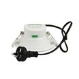 AURORA 10W LED recessed light with white trim and opaque acrylic diffuser. AURORA features CTS (Colour Temperature Switching) allowing the installer to select the colour temperature between warm white (3000K), cool white (4000K) or daylight (5700K).
