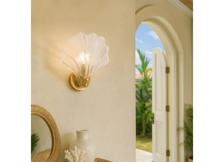 Elevate your interior decor with the Aurora Wall Sconce, a captivating fusion of coastal charm and modern sophistication.