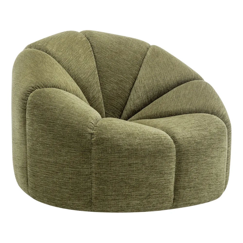 Elevate your interior with the Avalon Swivel Occasional Chair in olive chenille—a design-led piece that combines bold curves, plush comfort, and effortless functionality.
