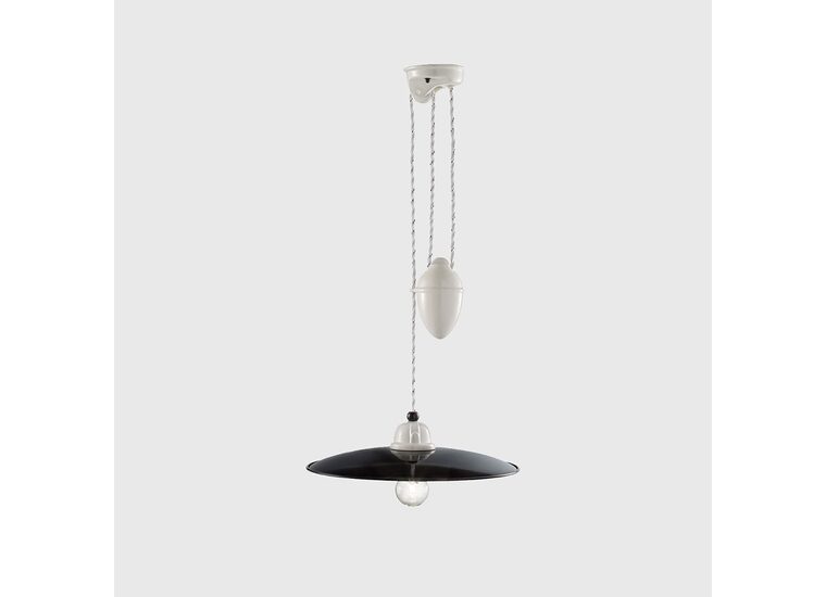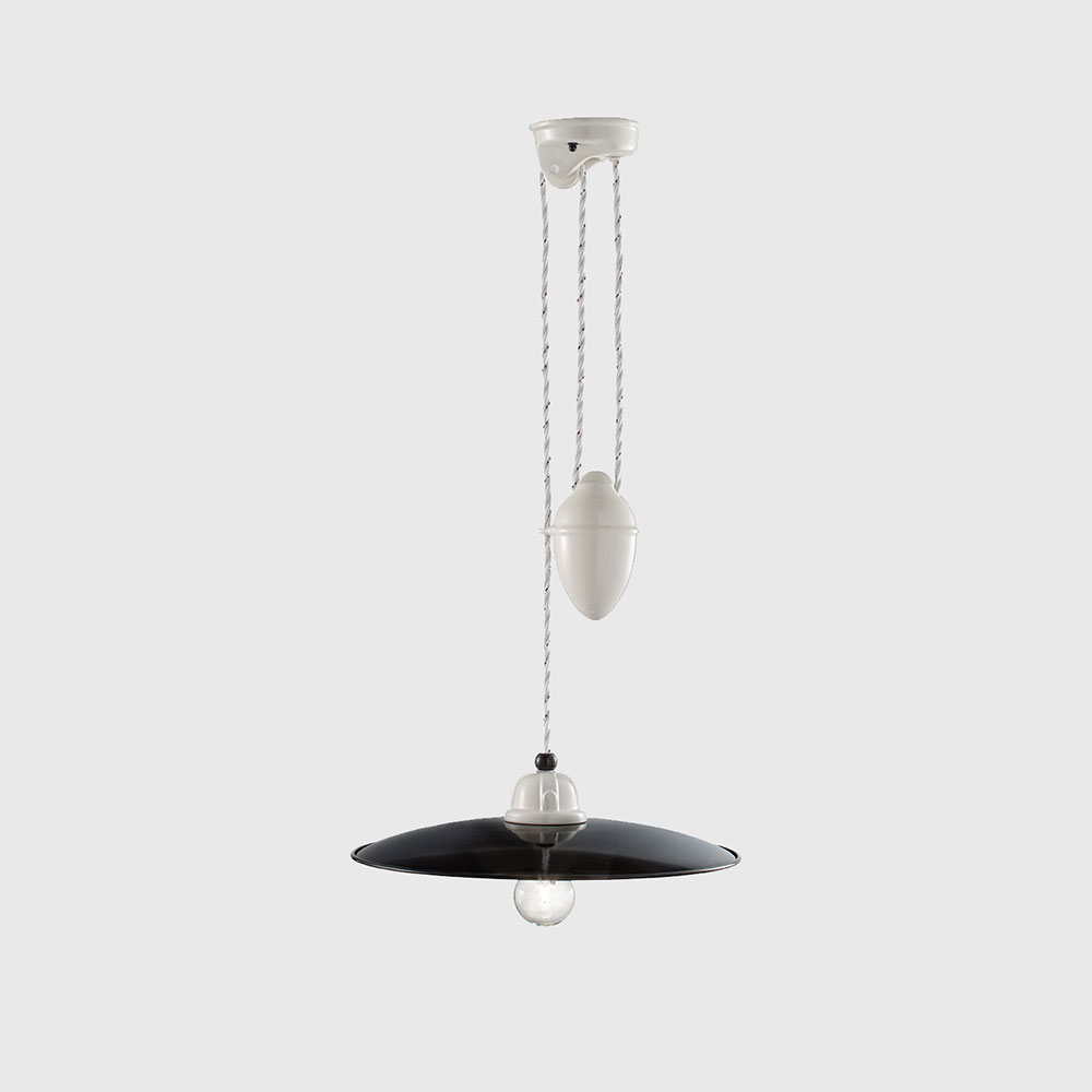 B&W Ceiling Light by Ferroluce draws inspiration from the chic simplicity of monochrome aesthetics, this collection features handcrafted ceramic lampshades with intricate patterns and textures, beautifully accentuated by the contrast of black and white.