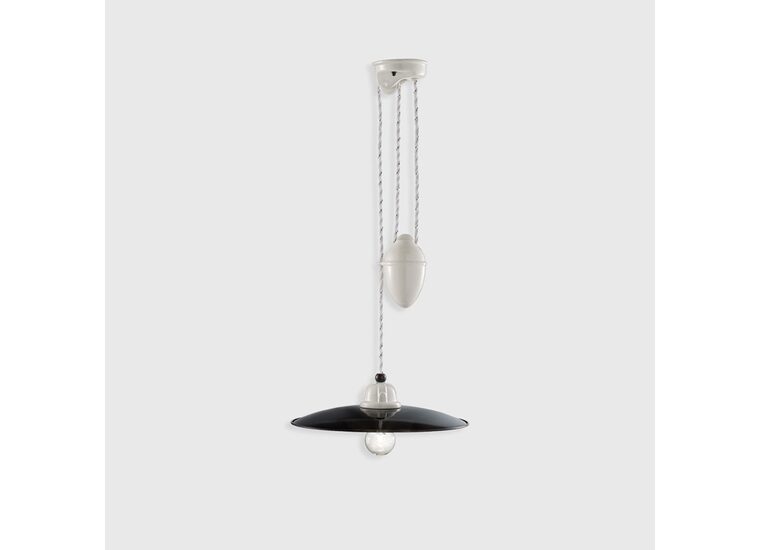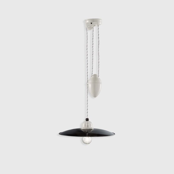 B&W Ceiling Light by Ferroluce draws inspiration from the chic simplicity of monochrome aesthetics, this collection features handcrafted ceramic lampshades with intricate patterns and textures, beautifully accentuated by the contrast of black and white.