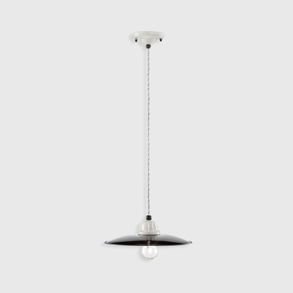 B&W Pendant Light by Ferroluce draws inspiration from the chic simplicity of monochrome aesthetics, this collection features handcrafted ceramic lampshades with intricate patterns and textures, beautifully accentuated by the contrast of black and white.