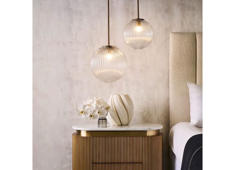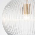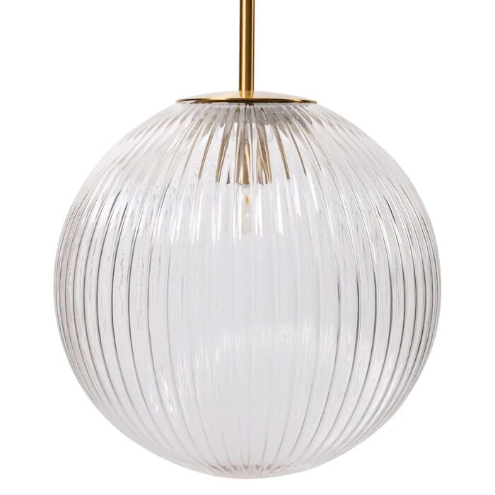 Effortlessly blending vintage charm with modern elegance, this pendant light features a stunning round ribbed clear glass ball that radiates a soft, diffused glow.