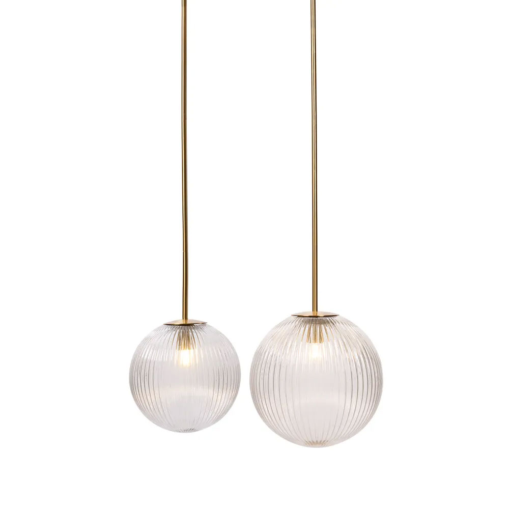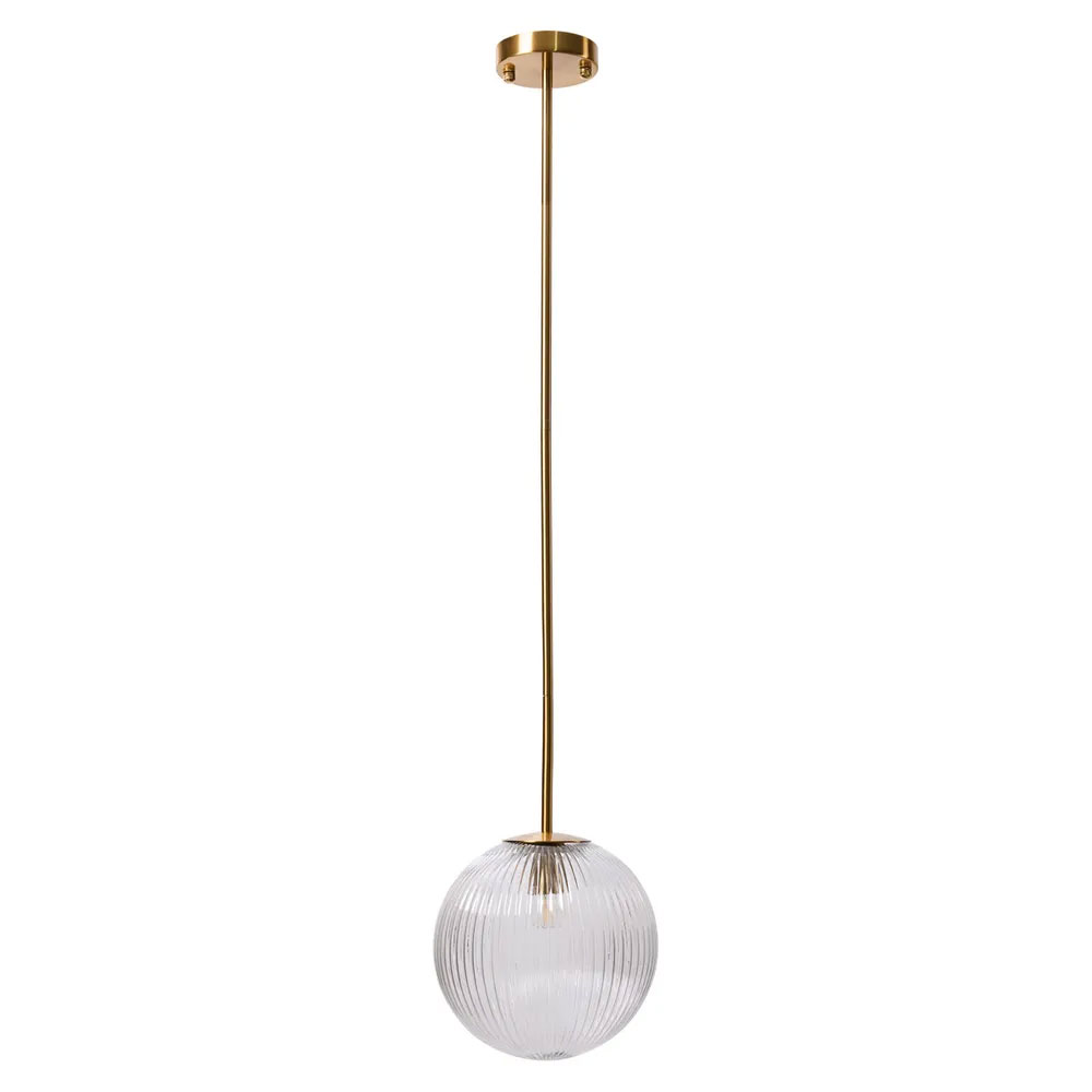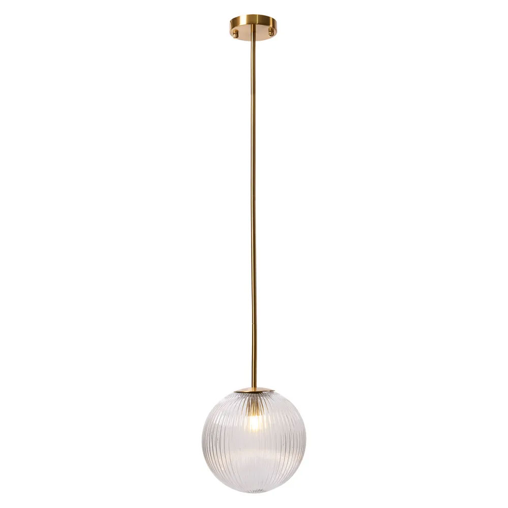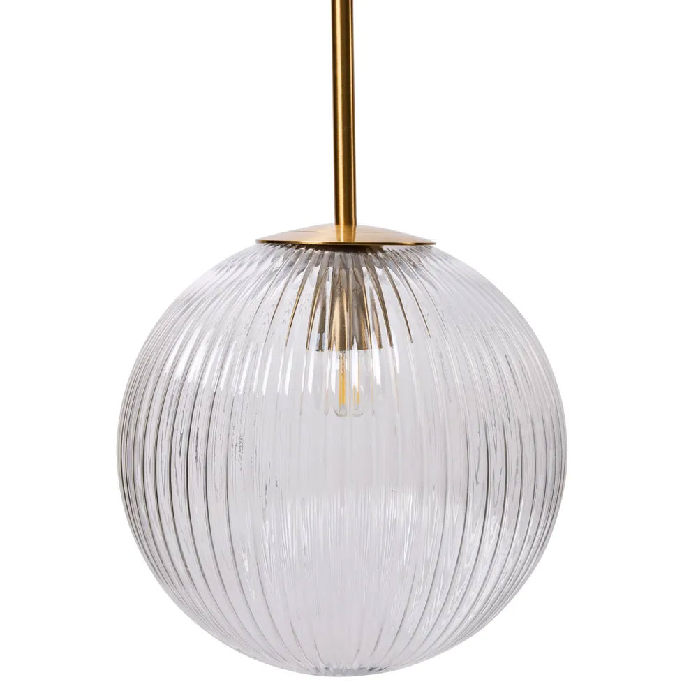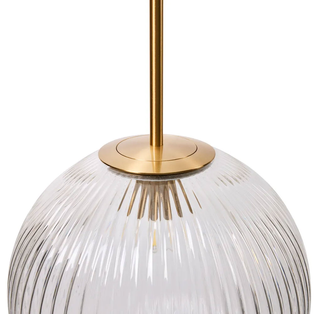 Effortlessly blending vintage charm with modern elegance, this pendant light features a stunning round ribbed clear glass ball that radiates a soft, diffused glow.