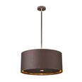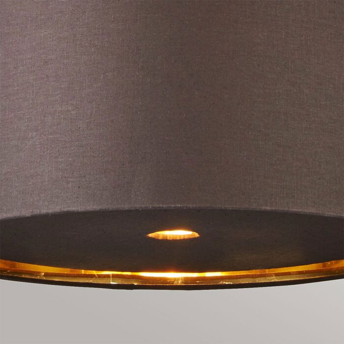 Each shade has a gold metallic lining. Pendants, table and floor lamps have fabric diffusers, and the chandeliers and wall lights include acrylic diffusers.