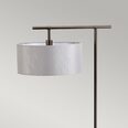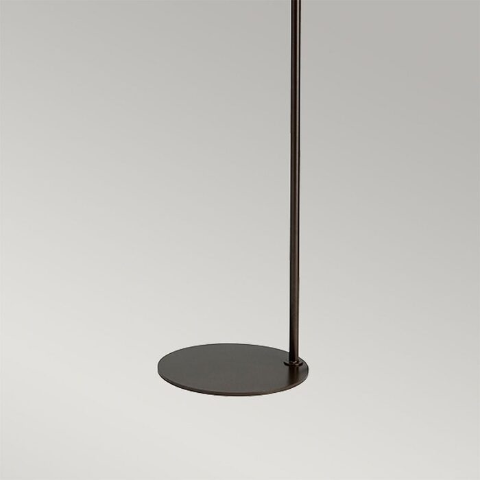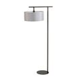 Dark brown painted floor lamp with simple modern frame. Includes grey cylinder shade and fabric diffuser.