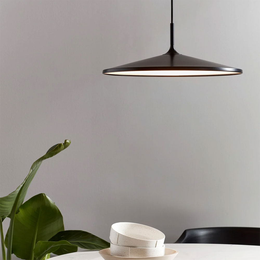 The large illuminating surface provides a good downward light which is advantageous above the dining, kitchen or coffee table.