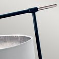 Two-tone table lamp finished in Black with Polished Nickel accents. Includes a white cylinder shade with silver mirror laminate lining.