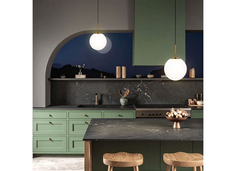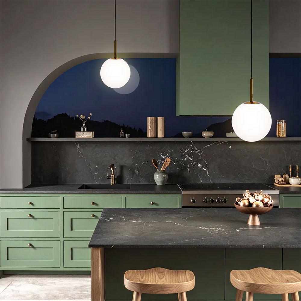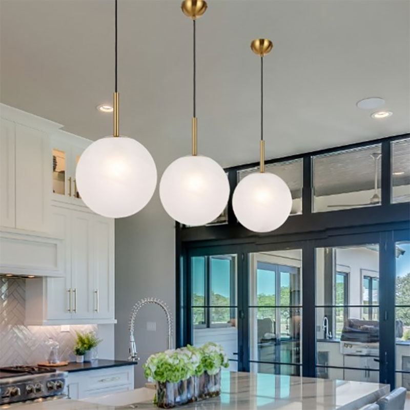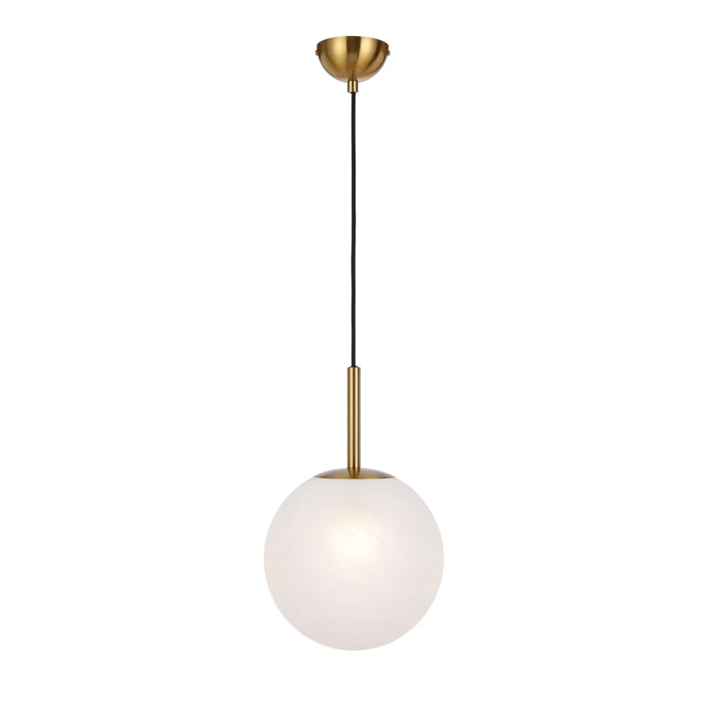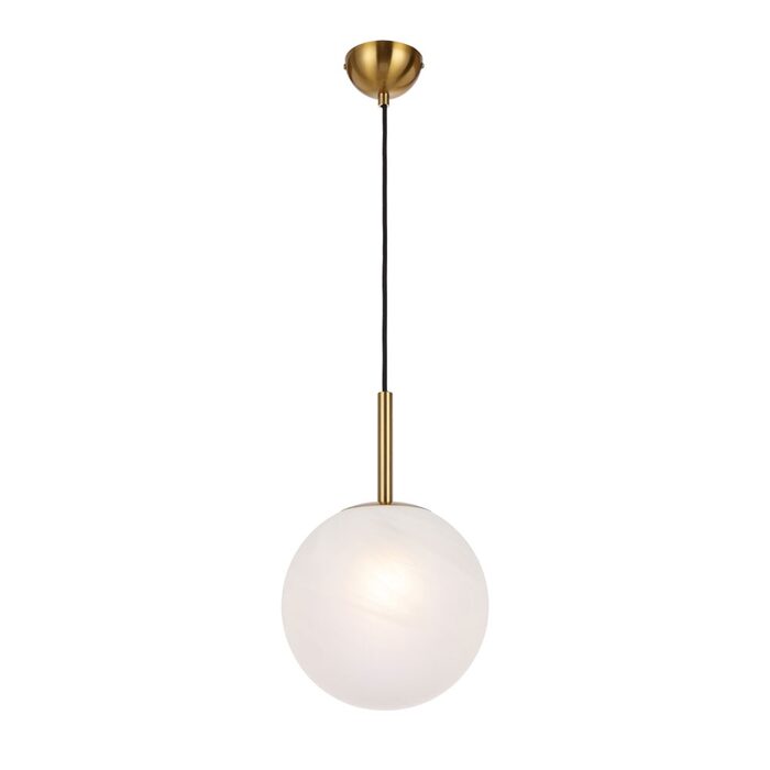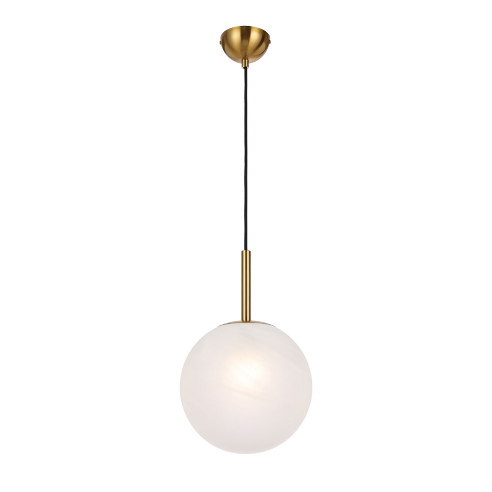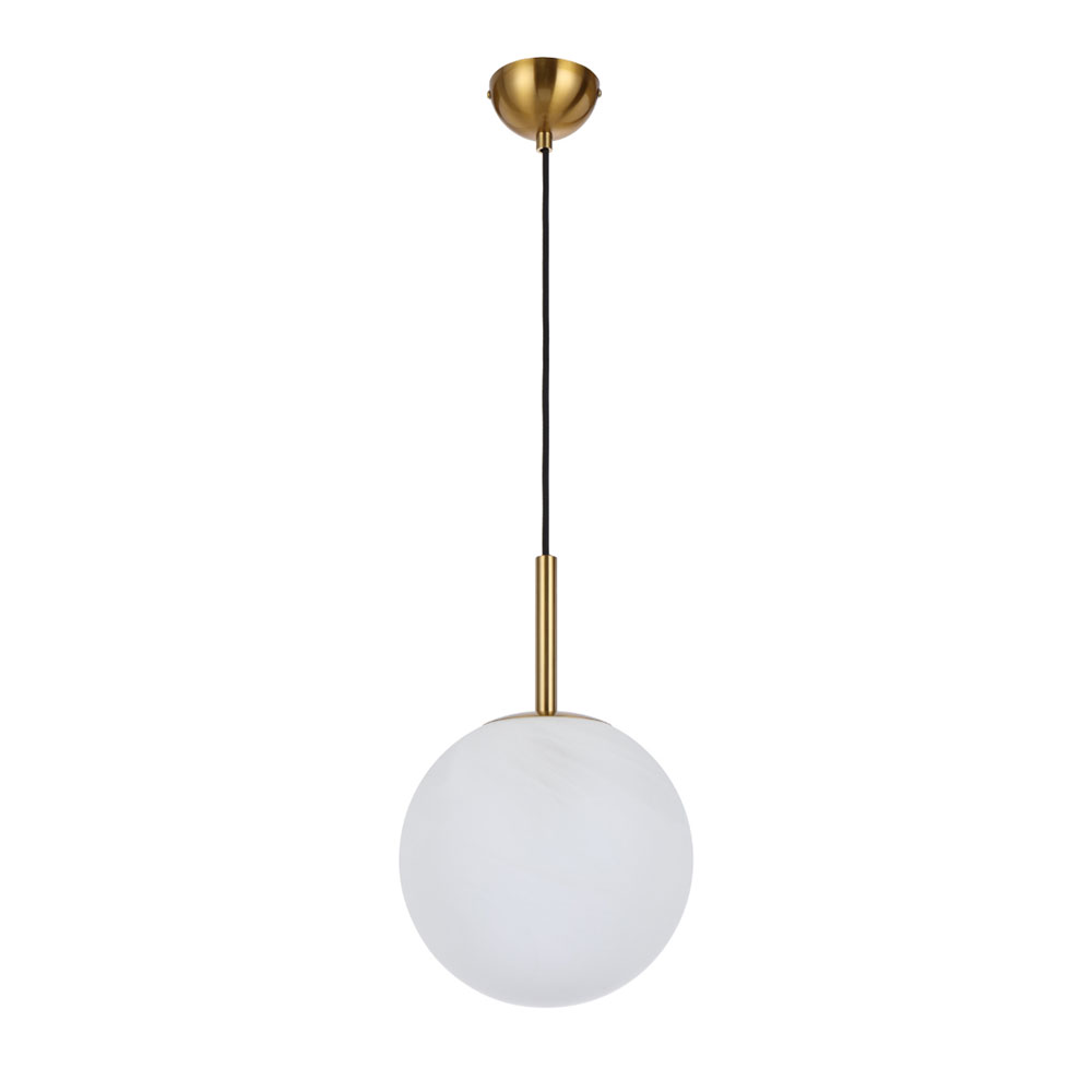 The sphere is finely blasted opal glass resembling the surface of fresh snow.