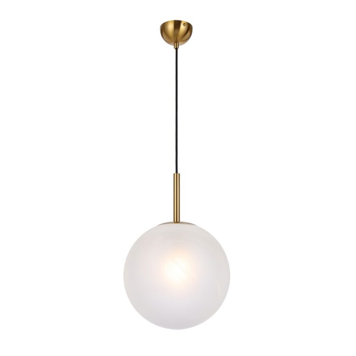 The sphere is finely blasted opal glass resembling the surface of fresh snow.