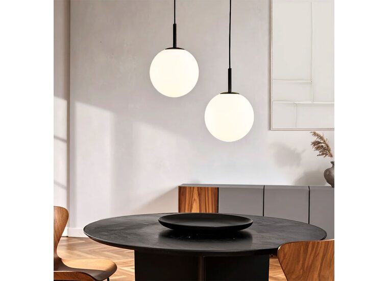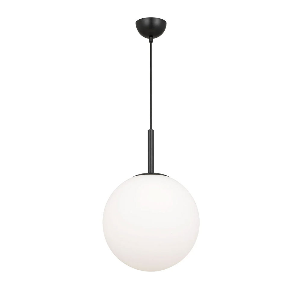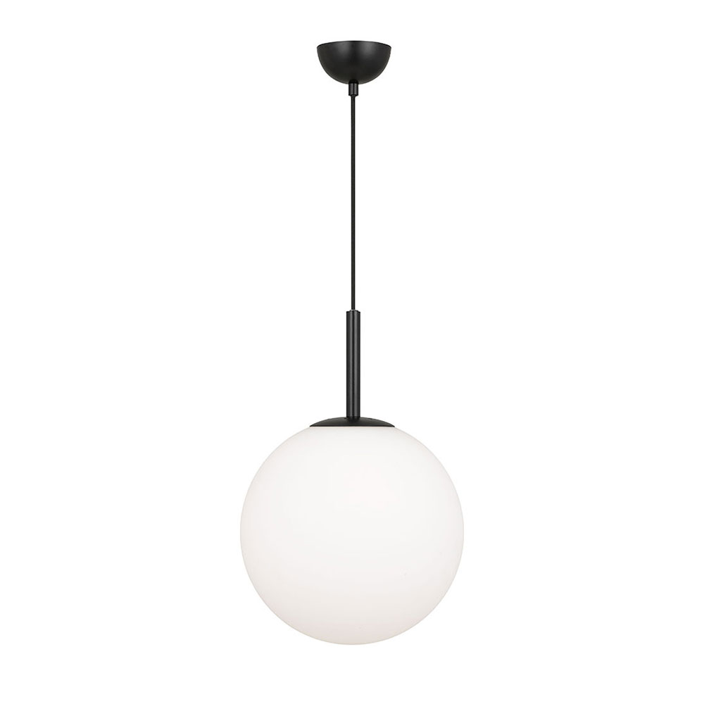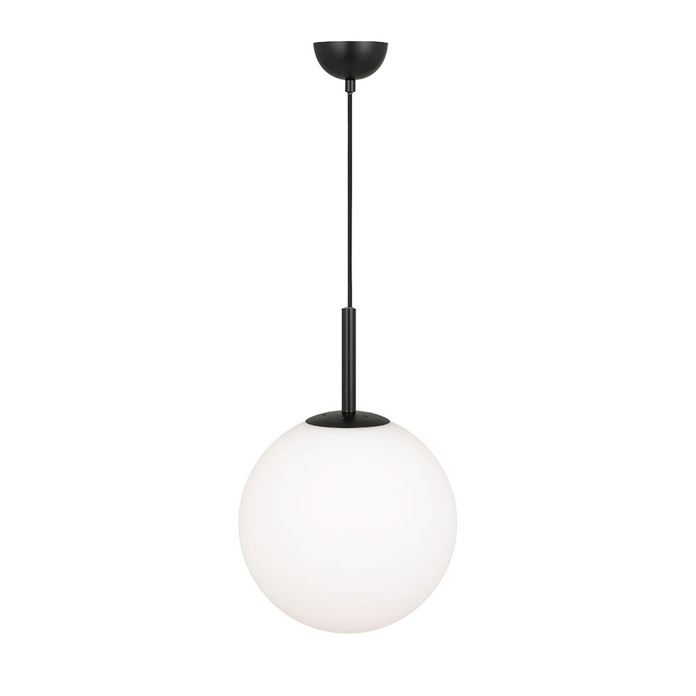 The sphere is finely blasted opal glass resembling the surface of fresh snow.