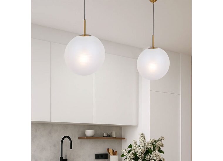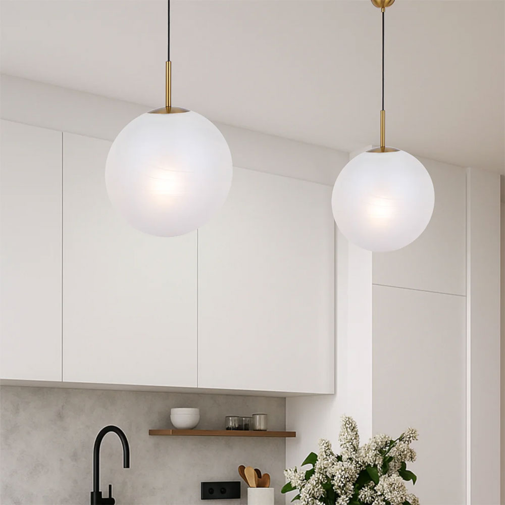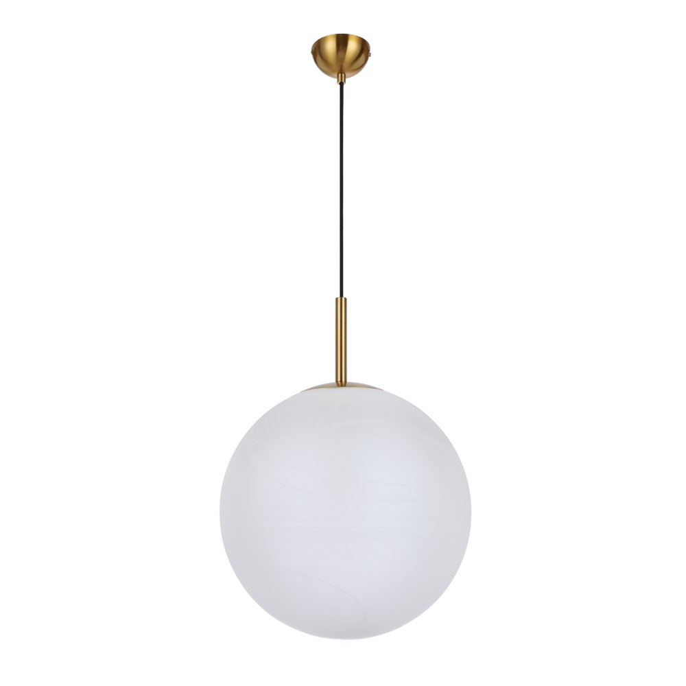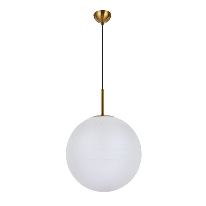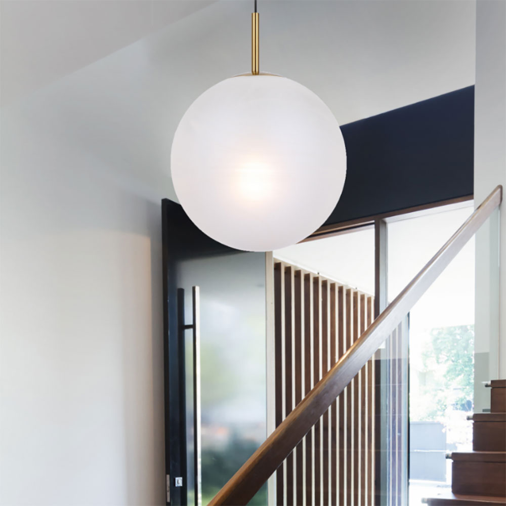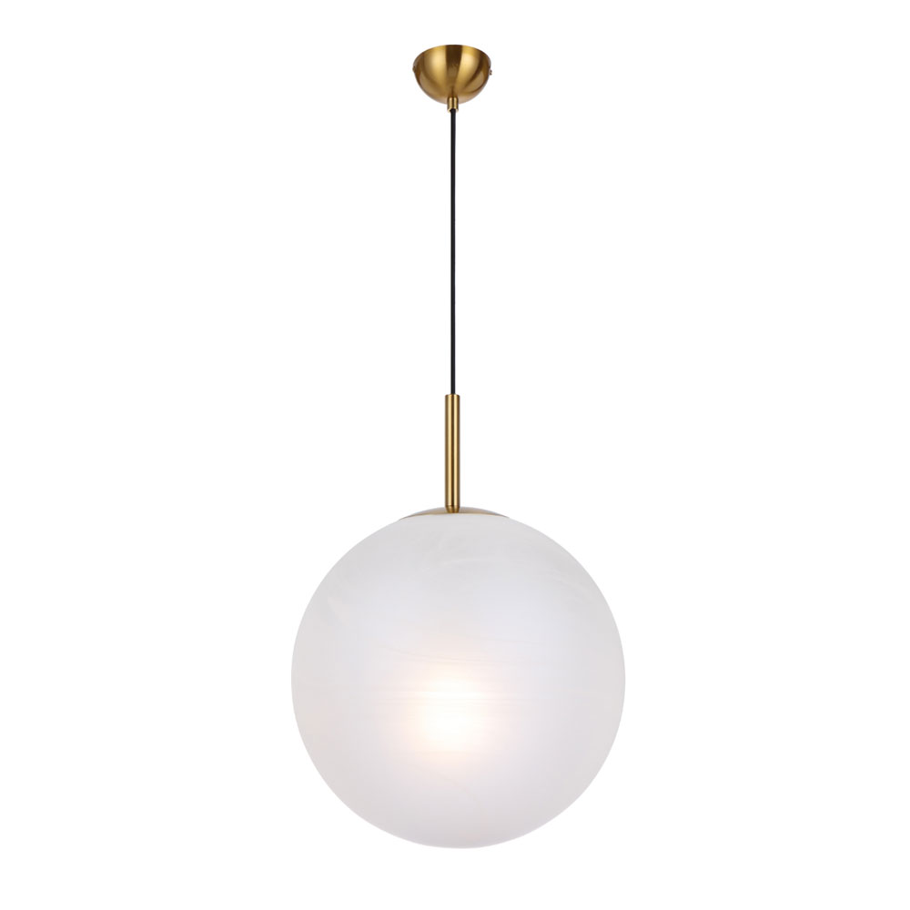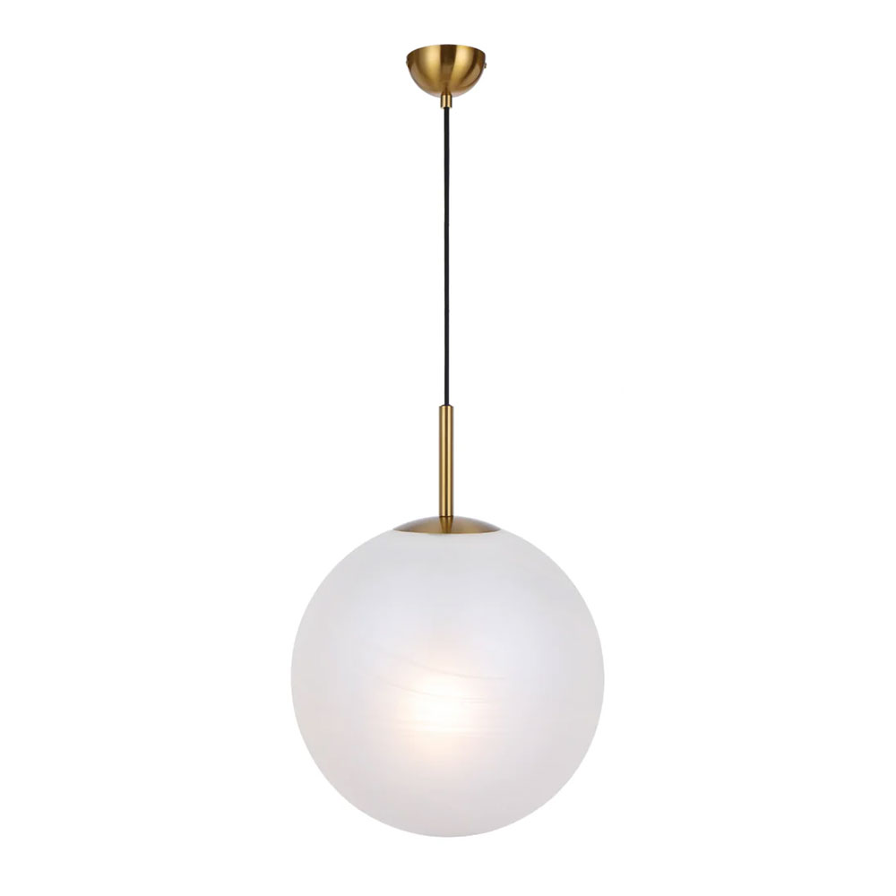 The sphere is finely blasted opal glass resembling the surface of fresh snow.