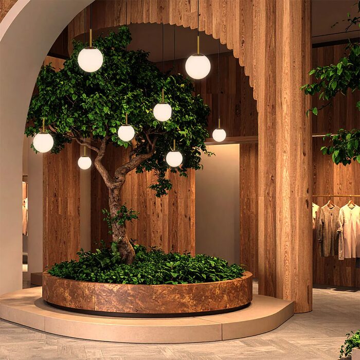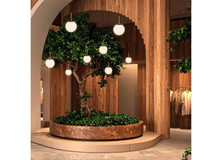The sphere is finely blasted opal glass resembling the surface of fresh snow.