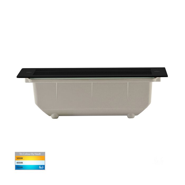 The HV3004T-BLK-12V is a Havit Bata 12V DC, black, recessed LED brick light with a grill face.