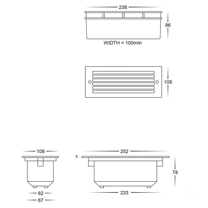 - Cut Out: 238mm x 100mm