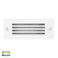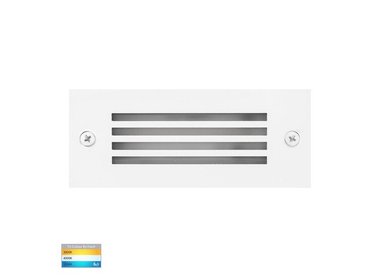 The HV3006T-WHT-240V is a Havit Bata 6W Tri-Colour LED Recessed Brick Light with a white grilled face, designed for outdoor walls.