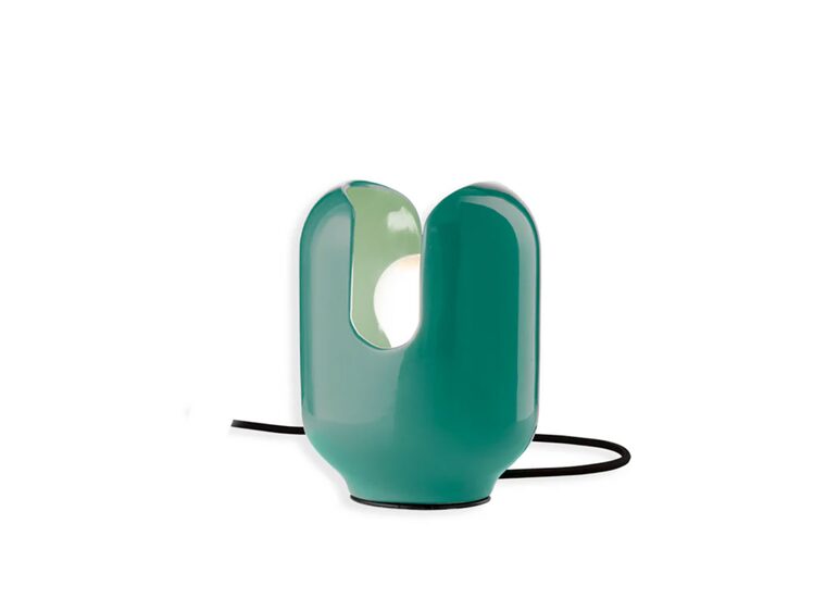 The Ferroluce Batucada C2590 Table Lamp seems to hold the light source, a precious spring, between two hands, cleverly concealing or revealing it as needed. The rhythmic interplay of light and shadow contributes to a captivating lighting experience.
