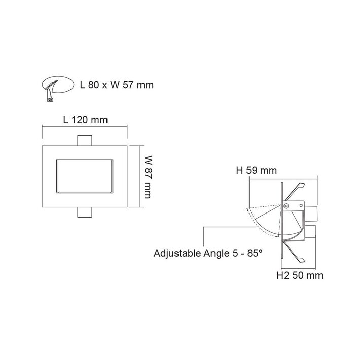 LED 3 watt recessed square wall luminaire with adjustable hood
