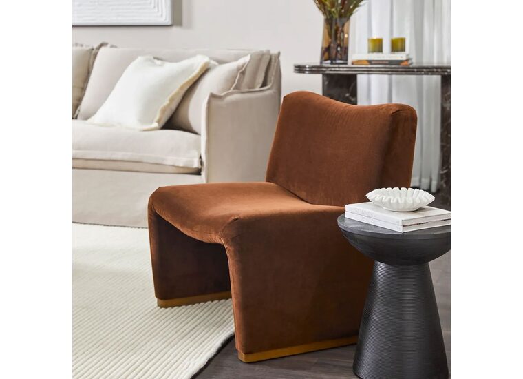 Its comfortable embrace is only matched by its refined tailoring encased in a plush dark chocolate velvet upholstery.