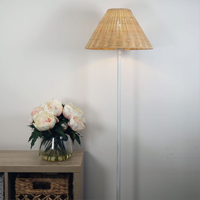 Simple in design, a style masterpiece, the BELIZE combines simple white metalware with a hand made rattan cane shade.