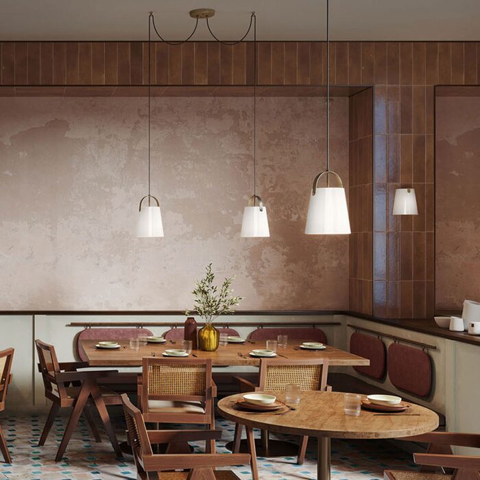 The glossy white glass ‘bell’ lampshades are enhanced by their mounting which gives the pendant lights a simple yet sophisticated appeal, allowing it to blend in effortlessly with any indoor décor.