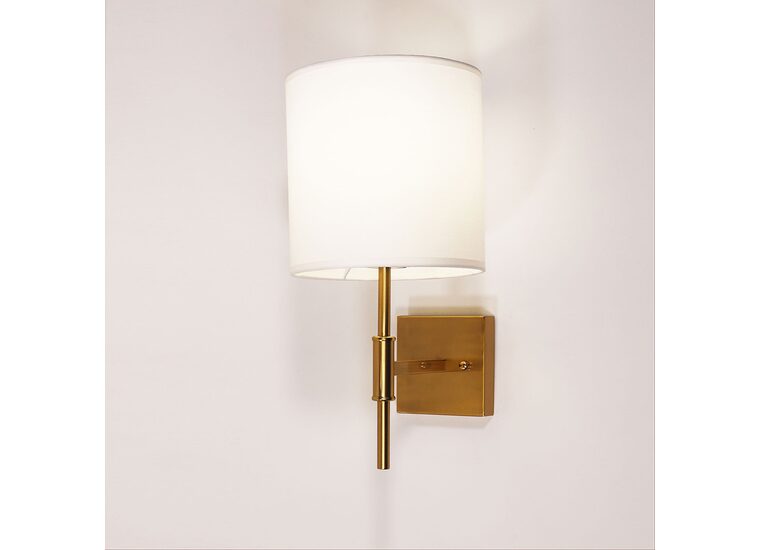 The BELLA, part of our American Styled lighting series, features a white fabric shade and square backplate.