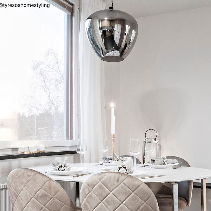 Bellissimo Grande fits nicely hanging by itself or in a cluster over a dining room table.