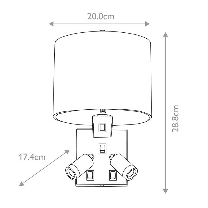 The wall lights are available with single or double directional LED spotlights, each including individual switches.