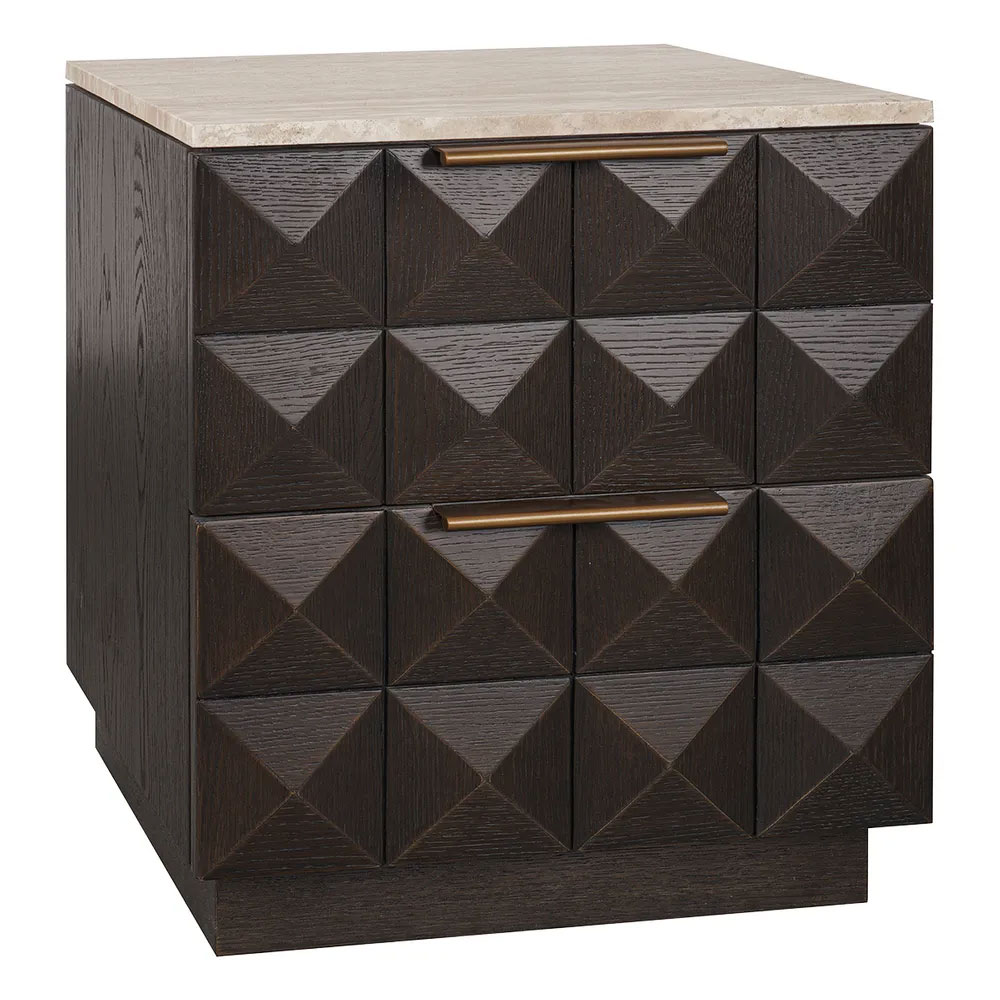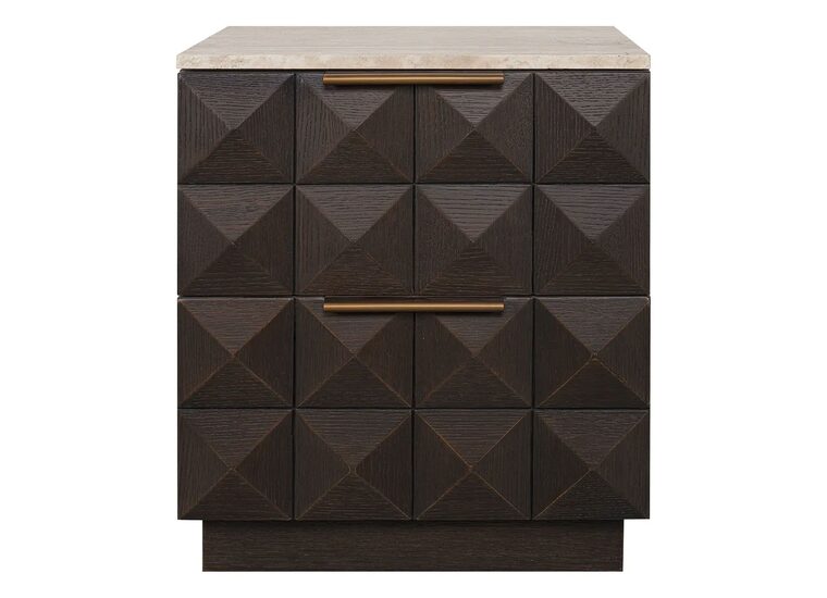 The Benedict bedside table with its travertine top offers natural elegance, exceptional quality and effortless versatility.