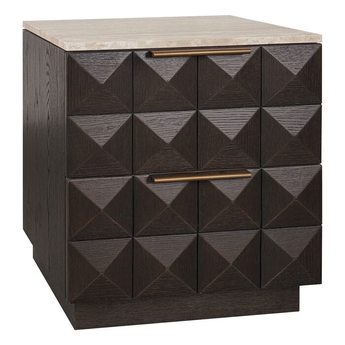 With two spacious drawers for practical storage, this piece is favoured by interior designers who appreciate premium craftsmanship, modern texture and a refined bedside solution that works seamlessly across shifting colour palettes and design directions.