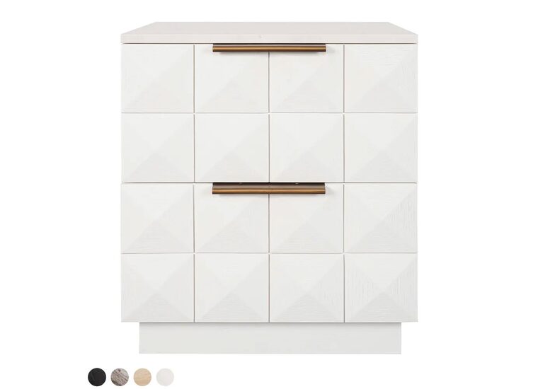 With two spacious drawers for practical storage, this piece is loved by interior designers seeking premium craftsmanship, modern texture and a refined bedside solution that transitions seamlessly across colour palettes and styling directions.