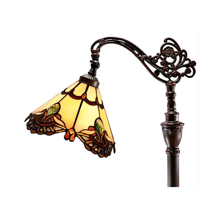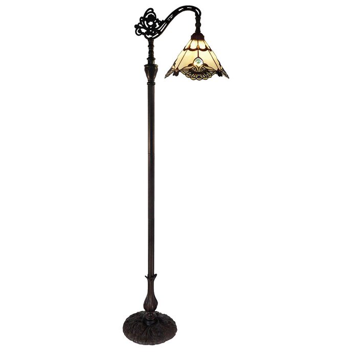 The elegant floor lamp on its stunning rich beige art glass shade will brighten up and inspire your space with natural elements.