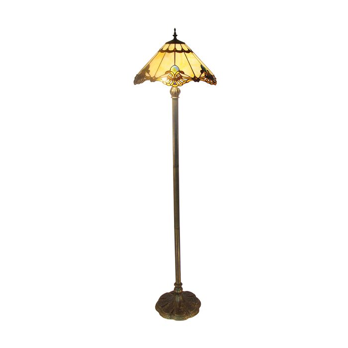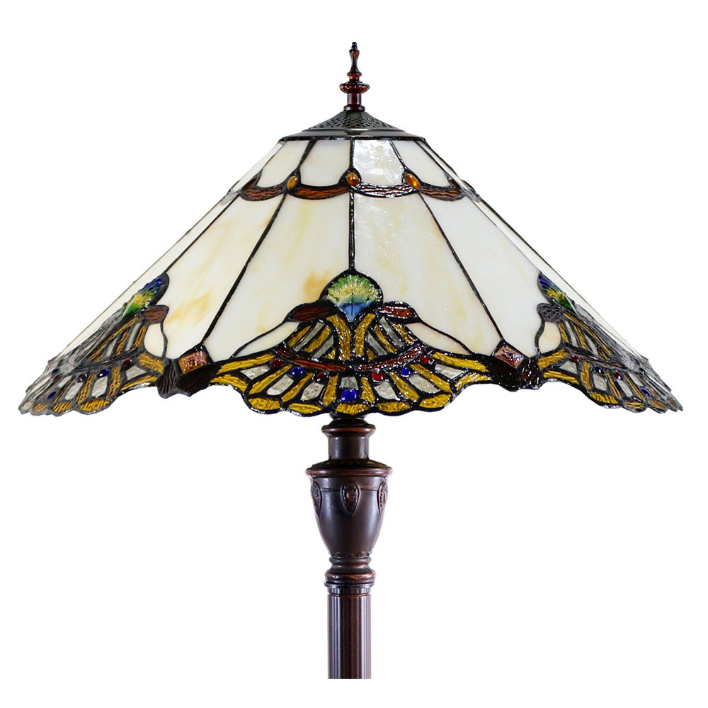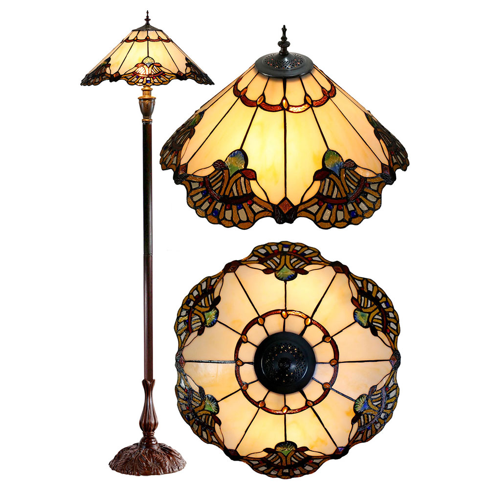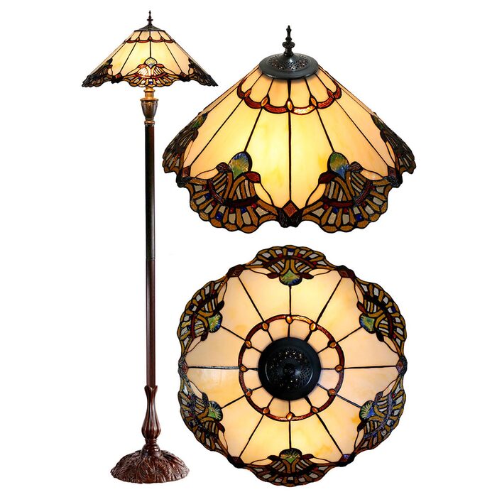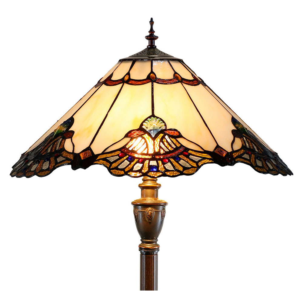 The elegant floor lamp on its stunning rich Beige art glass shade will brighten up and inspire your space with natural elements.
