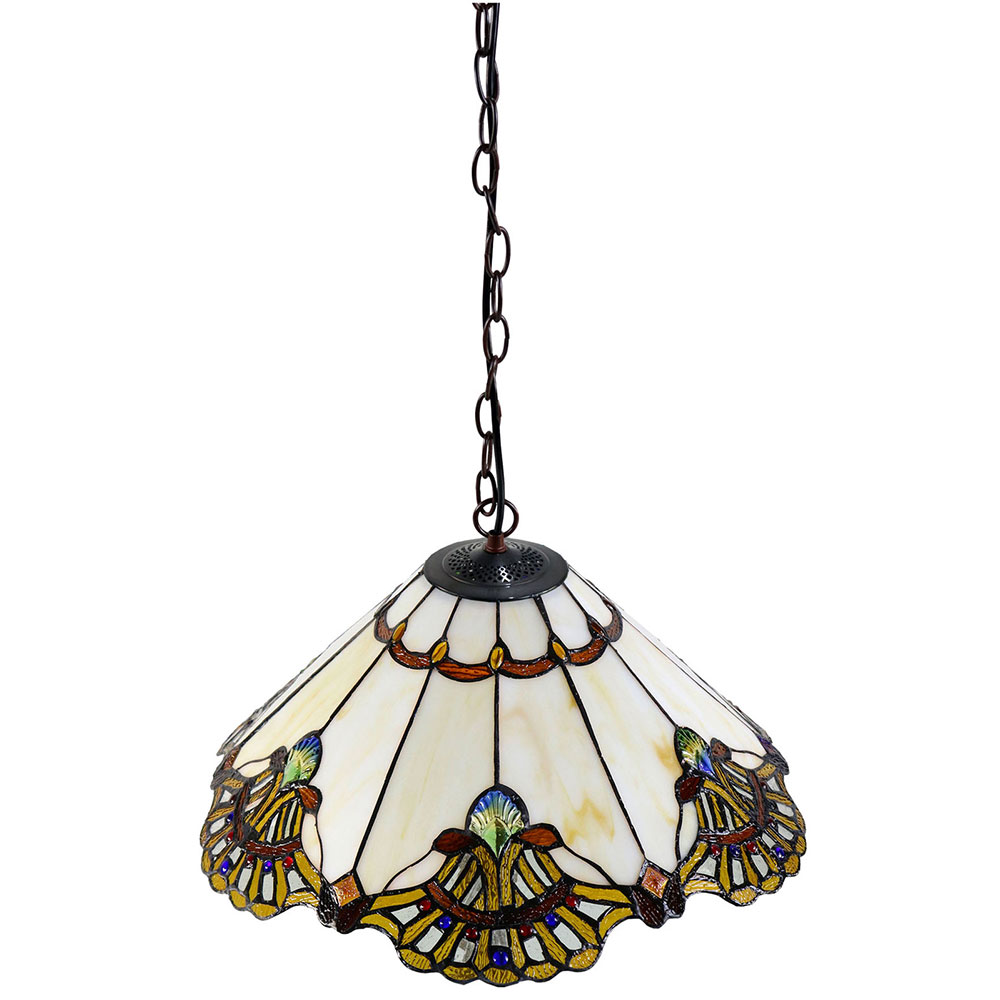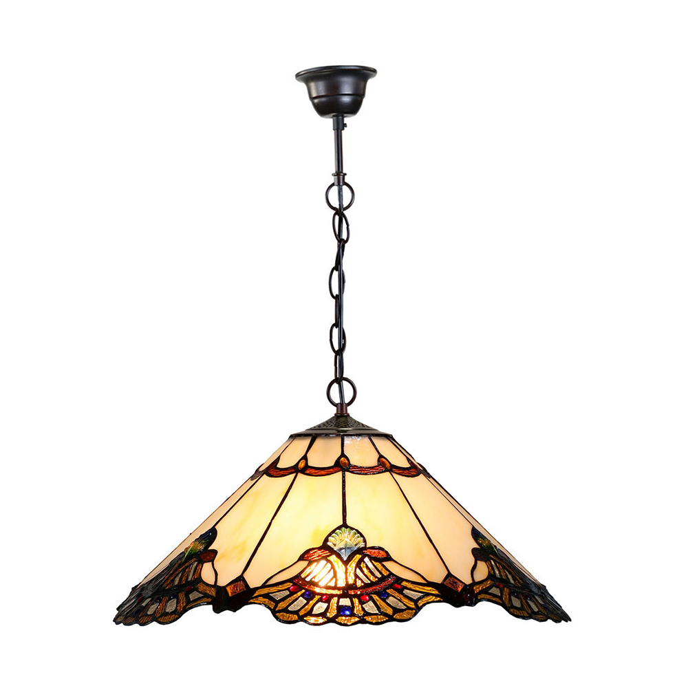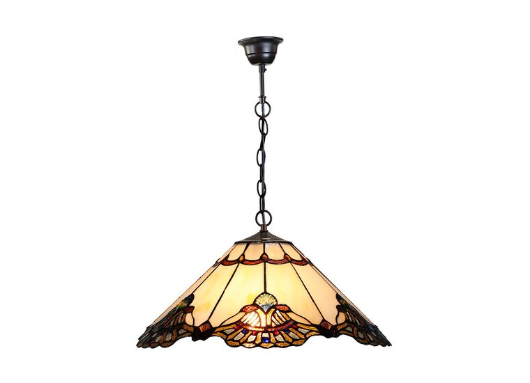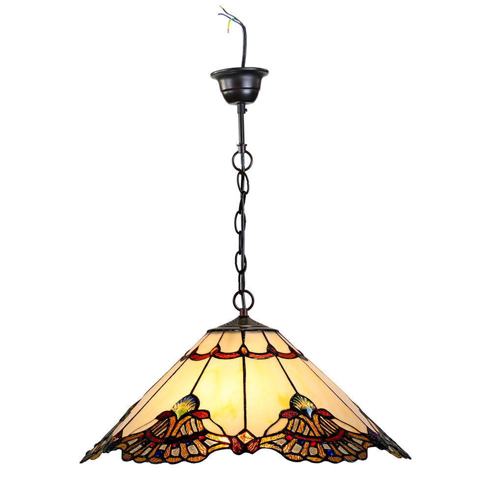 The colours and individual art glass of the Tiffany Pendant will not just illuminate but decorate any space in your home. This Tiffany style lamp will suit any space including a home office, a family room, or any living and entertaining space.