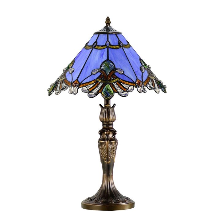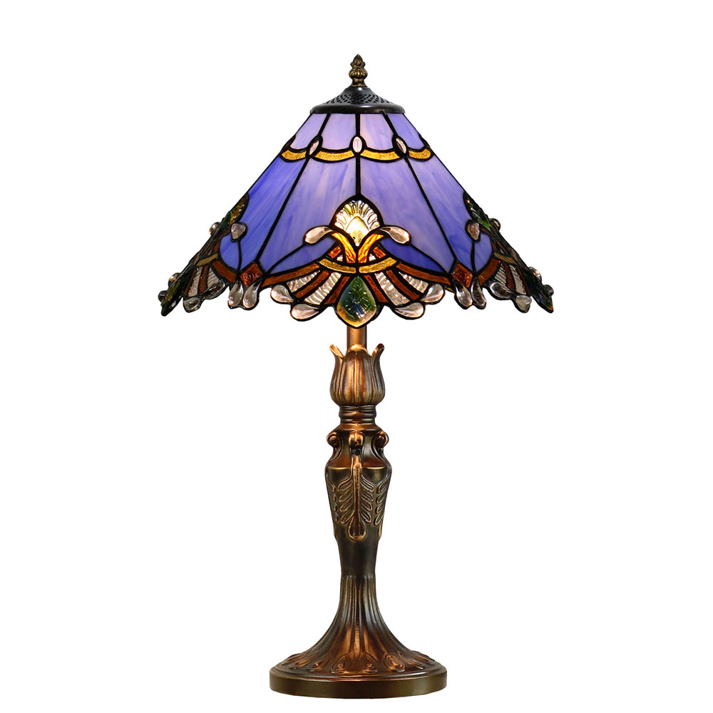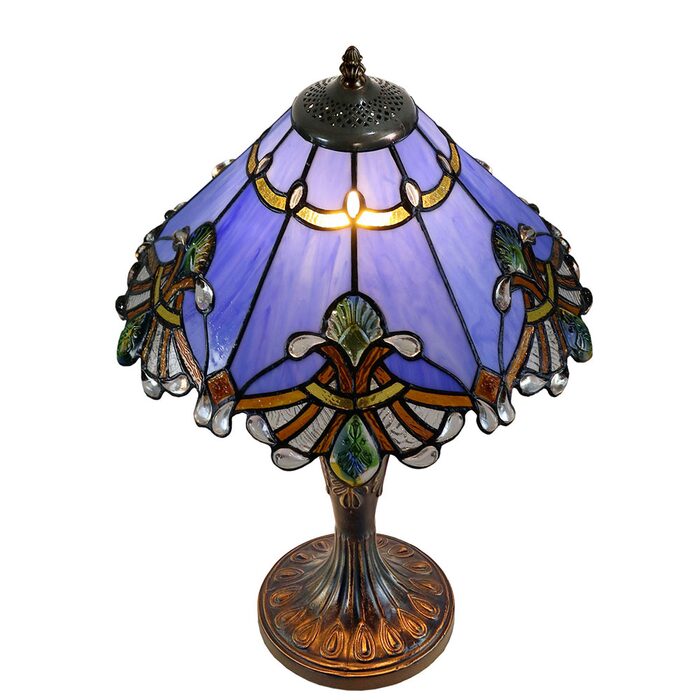 Illuminate your space with the stunning Benita Periwinkle Stained Glass Table Lamp!