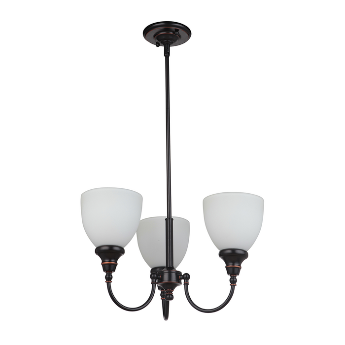 Traditional bronze coloured pendant light with upward facing arms with opal glasses.
