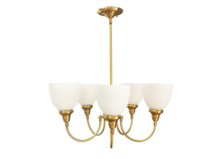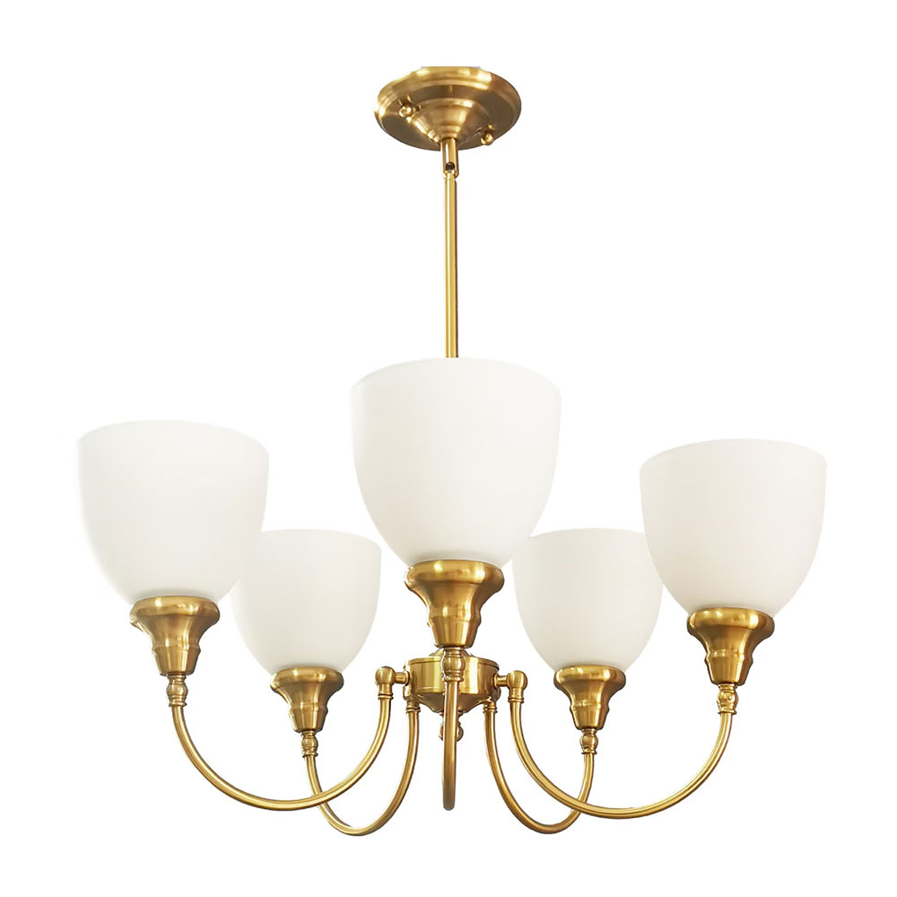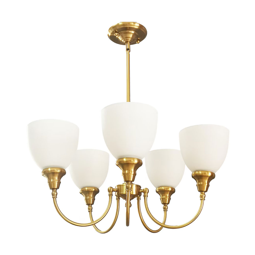 Featuring elegant opal glass shades, it offers a soft, diffused glow that enhances any room with warmth and sophistication.