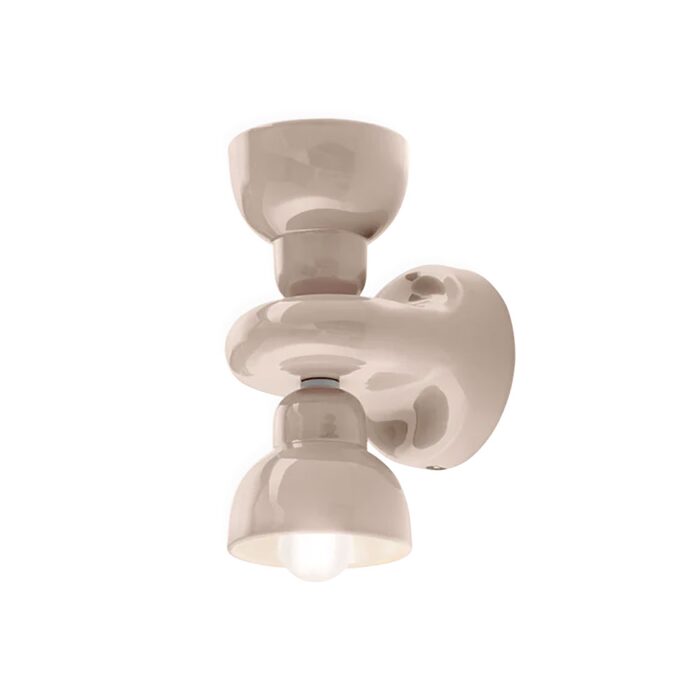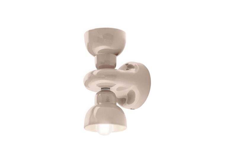 The Berimbau 2 Light Wall Light by Ferroluce is crafted from ceramic and features a bold sand grey finish.