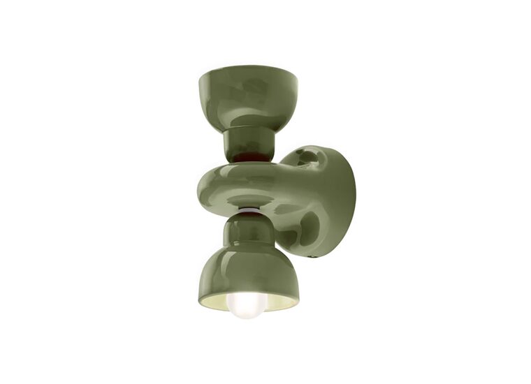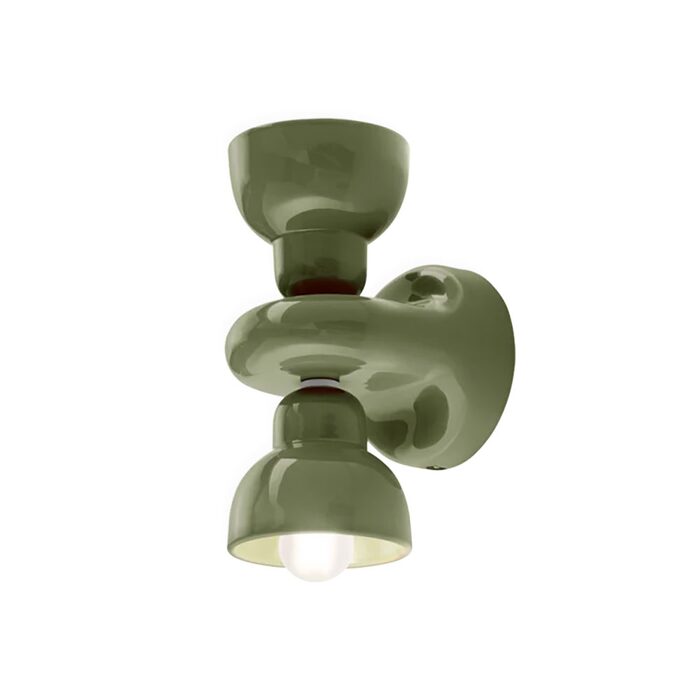 The Berimbau 2 Light Wall Light by Ferroluce is crafted from ceramic and features a bold sage green finish.