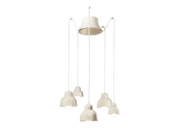 Berimbau 5 Light Pendant Light by Ferroluce is crafted from ceramic and finished in cream, bringing elegance and character to any space.